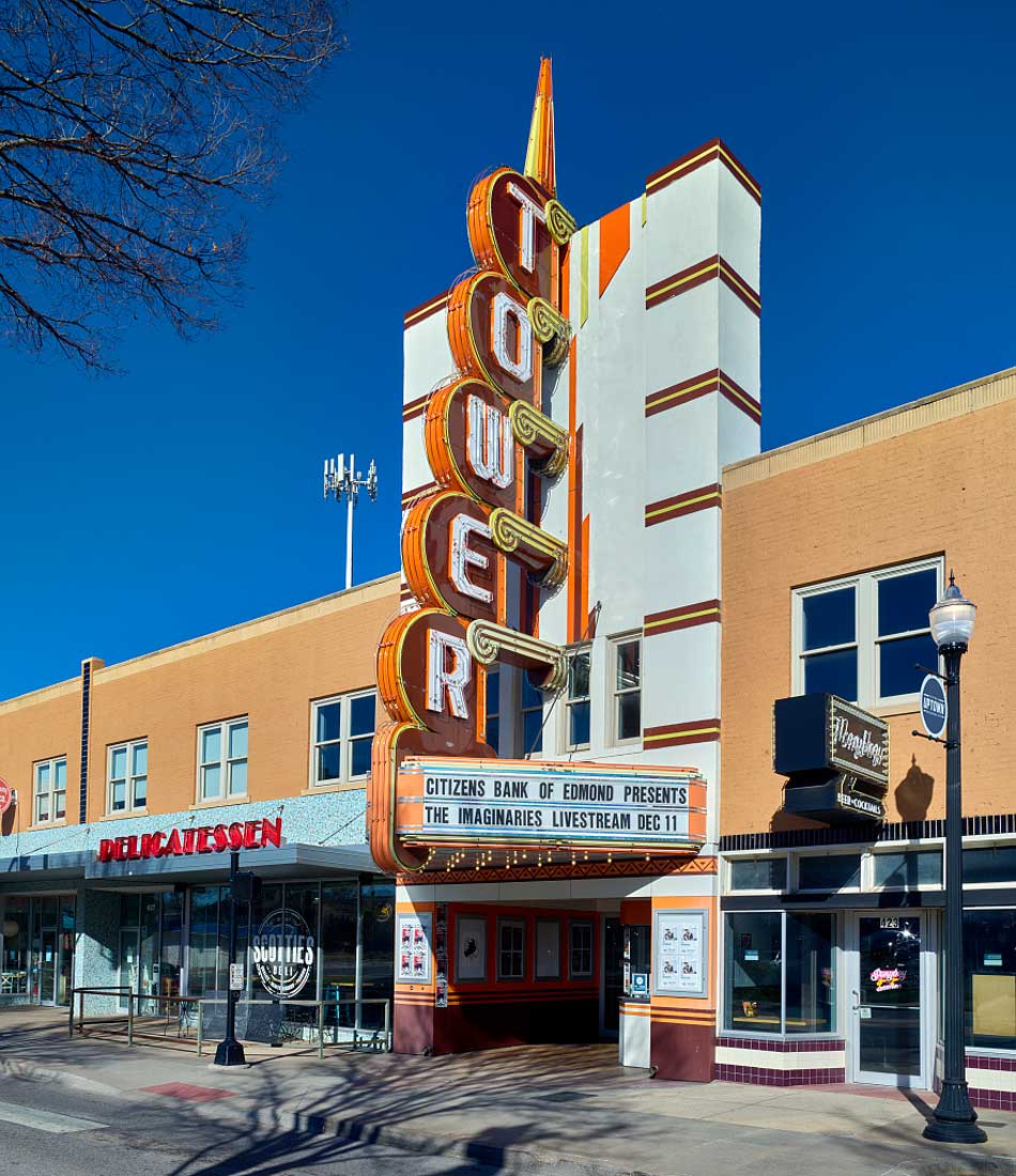 Situado unos metros más adelante, el histórico Tower Theater , inaugurado en 1937, se mantiene como una de las últimas salas de cine originales de Oklhaoma City. Su auditorio, con capacidad para 1.500 personas, todavía conserva intacta su estructura original y su hermosa marquesina de neón, lo que lo convierten en un verdadero emblema del distrito de la 23rd Street.