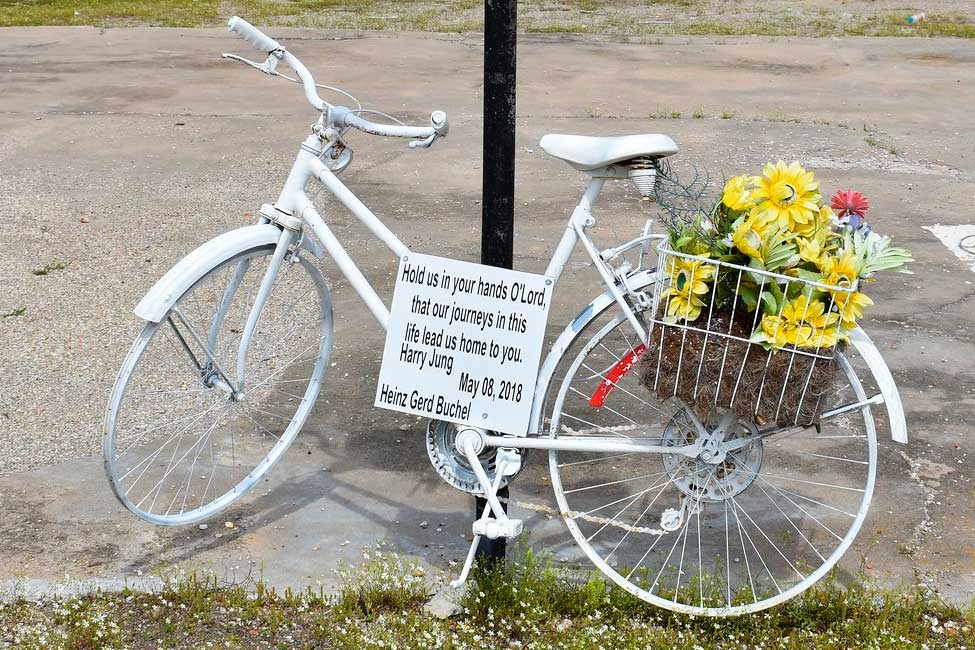Justo antes de llegar, al edificio de la Asociación de la Ruta 66 en Kansas, a un lado de la carretera, hay una «Bicicleta Fantasma» pintada de blanco… Fue colocada allí por los residentes locales en memoria de dos ciclistas alemanes que murieron en un accidente al oeste de Galena…