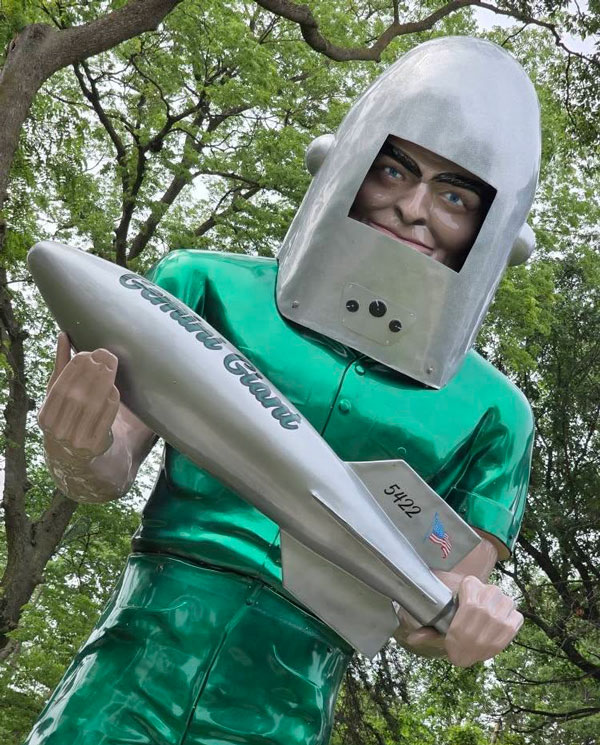 La imagen del Gemini Giant captura perfectamente el espíritu de optimismo y maravilla de la época en la que fue concebido… Foto: Route66news.com